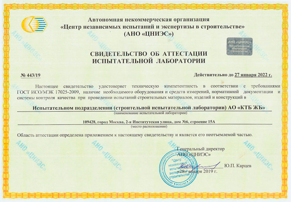 | 1.19 | Лабораторное сопровождение бетонных работ на строительном объекте неразрушающими методами контроля в промежуточном и проектном возрасте заказчика (выездное) | 1 м3 | от 60 руб. |
