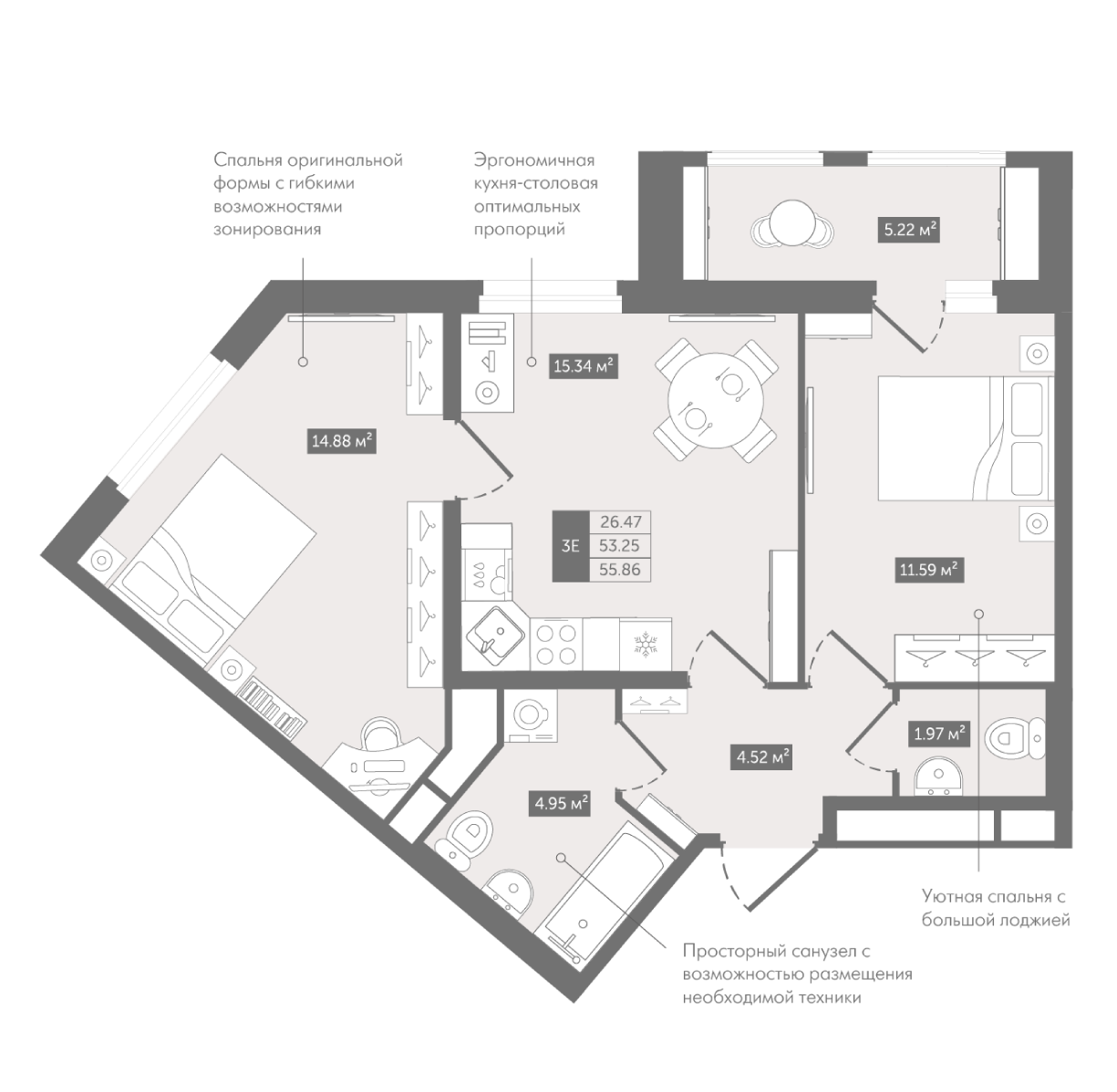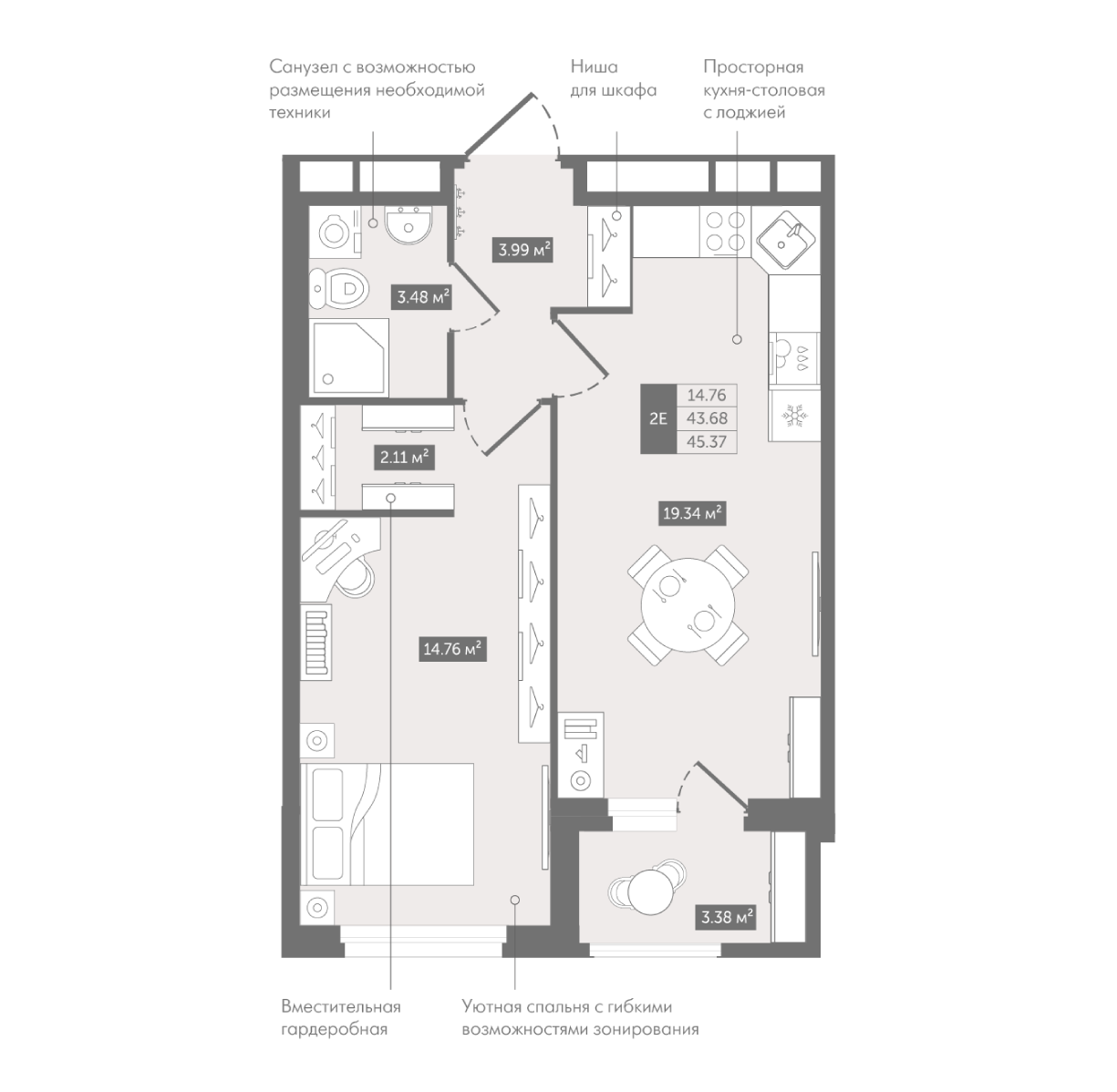 Классические и евро-форматы, мастер-спальни, кухни-гостиные, гардеробные, большие лоджии — для комфорта каждого.