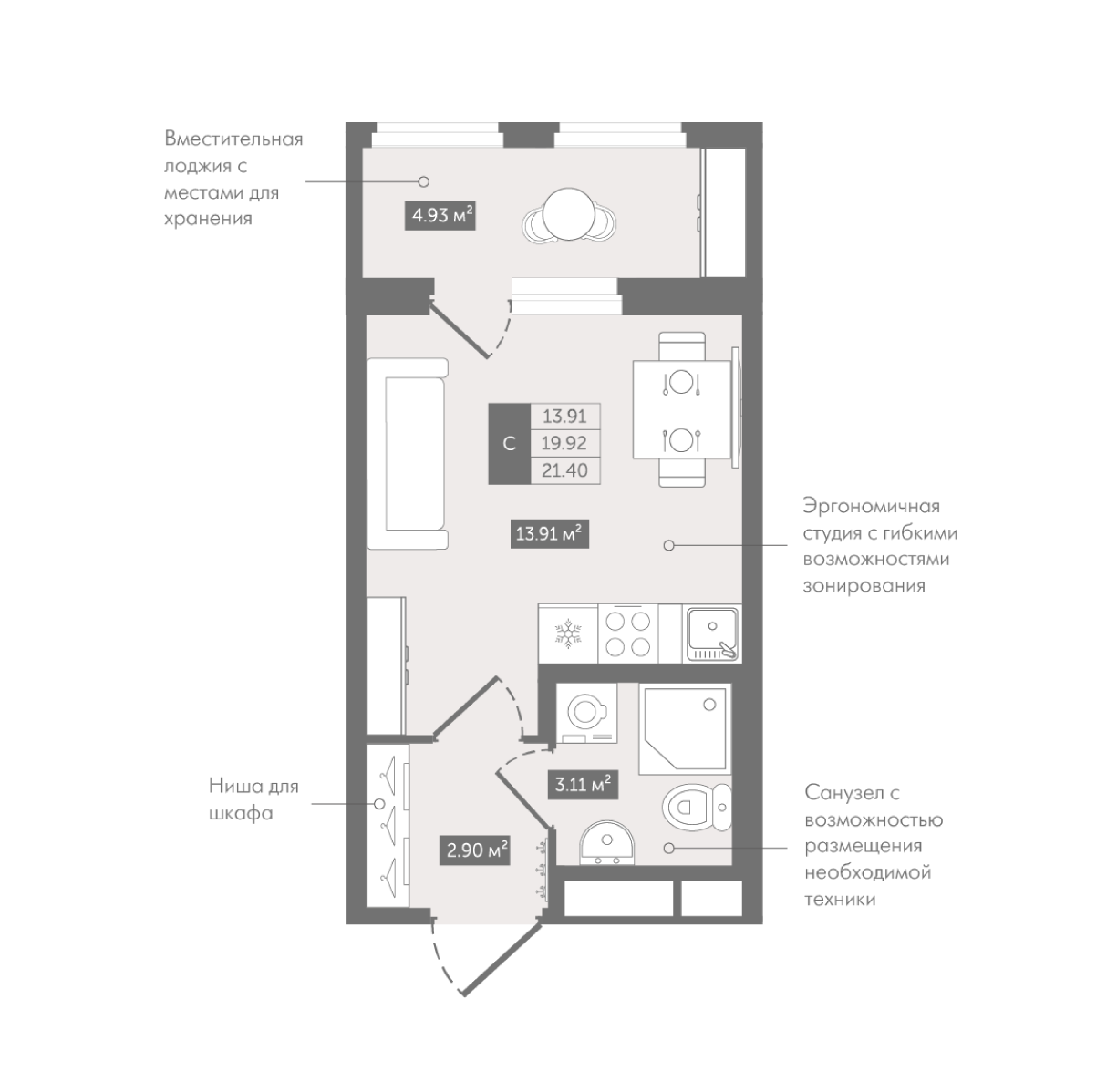 От компактных и уютных студий до просторных 4-комнатных квартир с двумя санузлами для большой семьи.